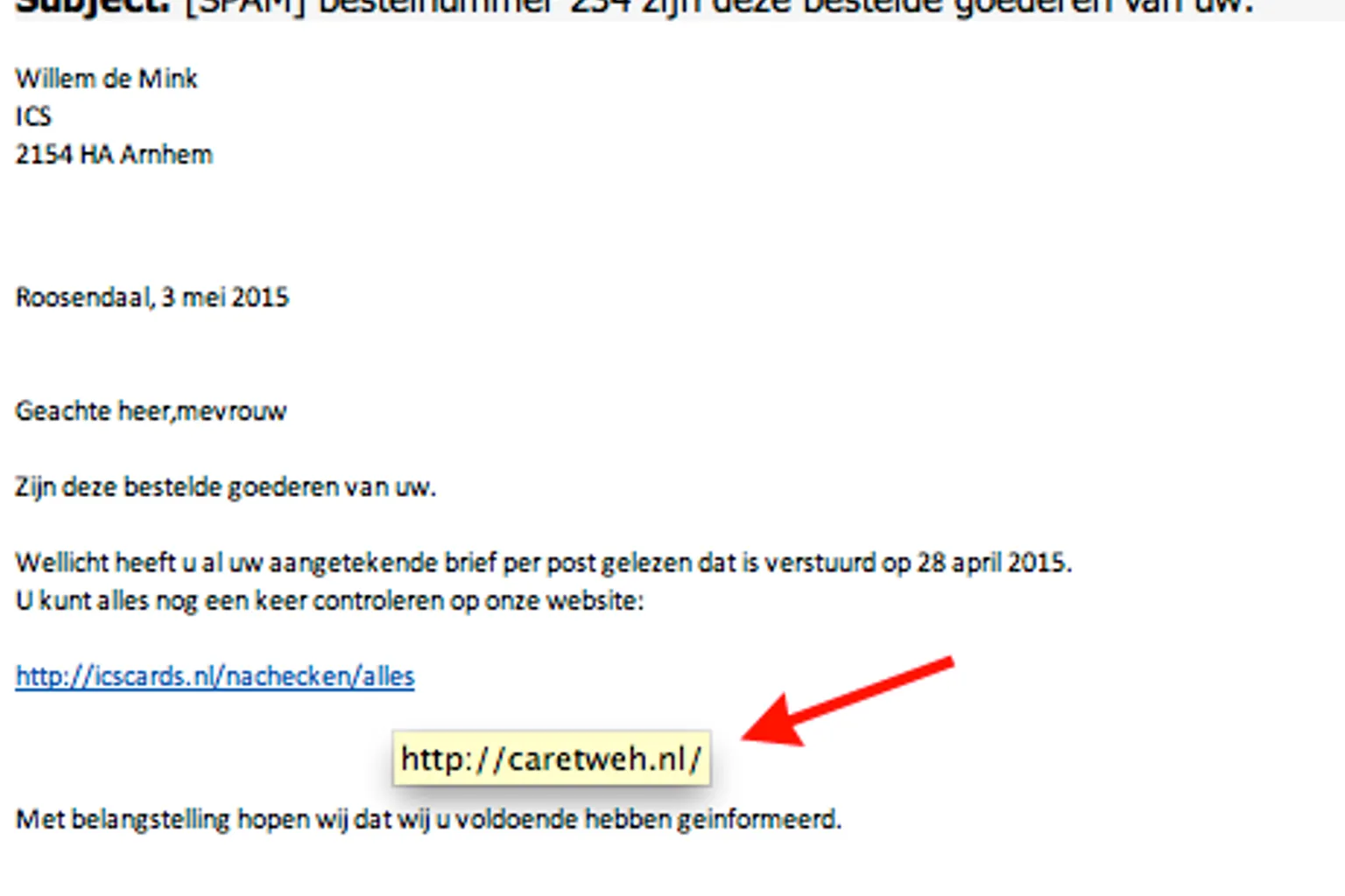 Phishingmail ICS: ‘zijn deze goederen van u?'