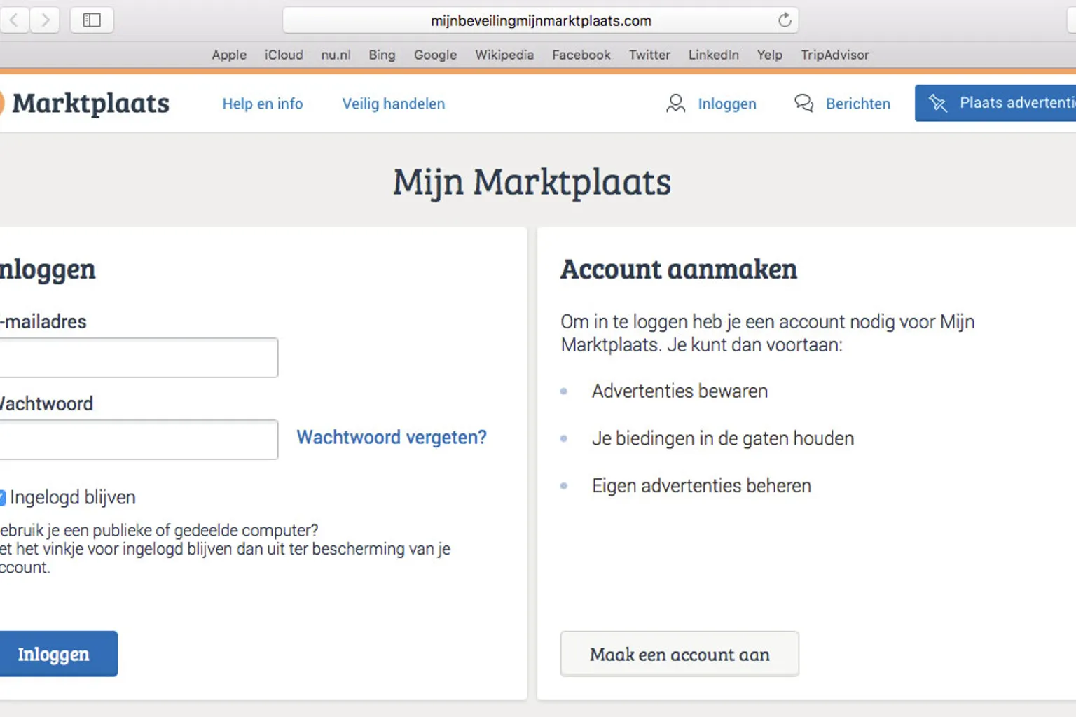 Via de link kom je terecht op een valse website. De opmaak van de site is gelijk aan de werkelijke website van Marktplaats. Er wordt gevraagd om jezelf in te loggen. Doe dit niet! Met je inloggegevens kunnen criminelen identiteitsfraude plegen.