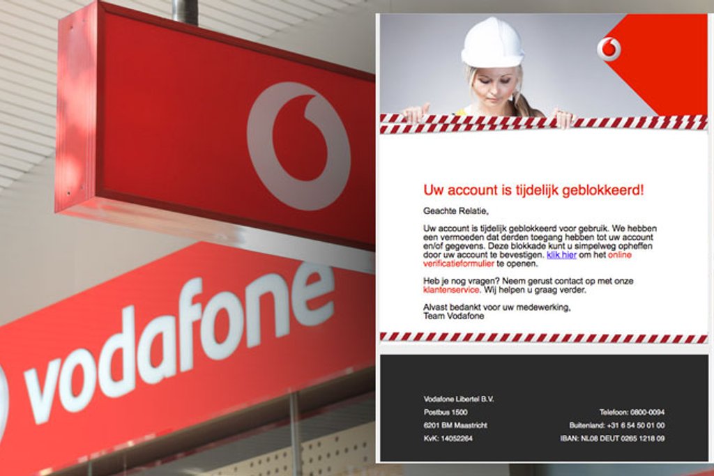 Ontvang je een e-mail uit naam van Vodafone waarin staat dat je account is geblokkeerd? Trap er niet in. Het is phishing.