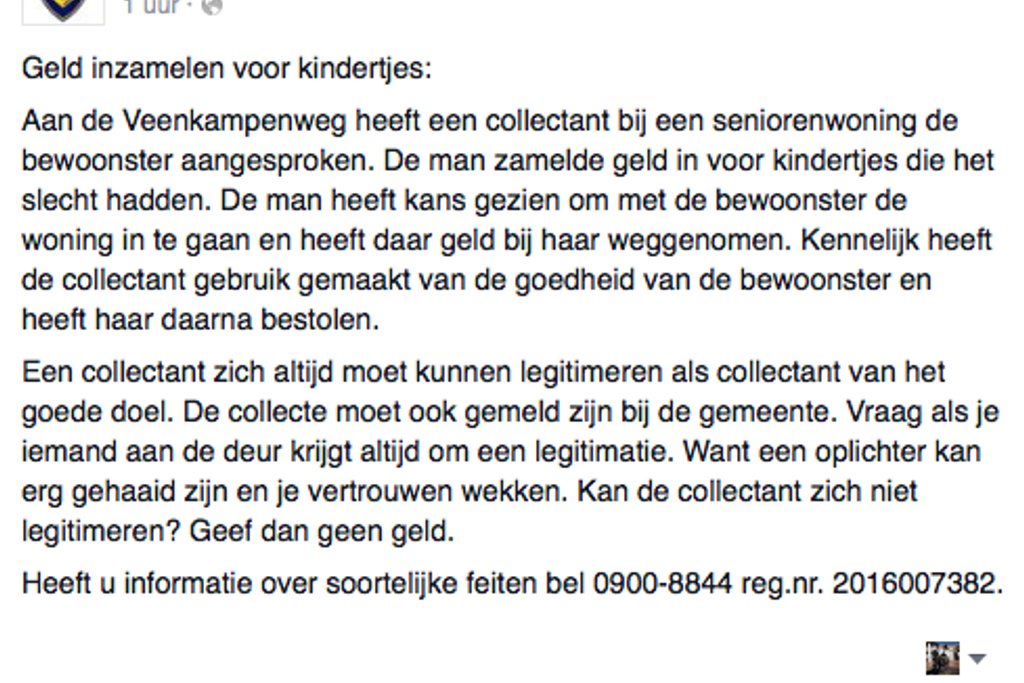 De politie in Emmen waarschuwt voor een nepcollectant die zegt geld op te halen voor 'kinderen die het slecht hebben'.