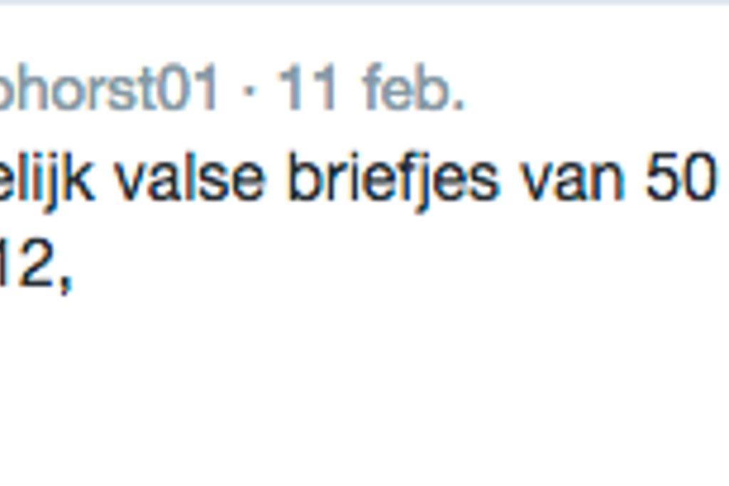 Ook de politie in Staphorst waarschuwt voor vals geld. Een wijkagent meldt op Twitter dat in het dorp mogelijk valse briefjes van 50 euro in omloop zijn.