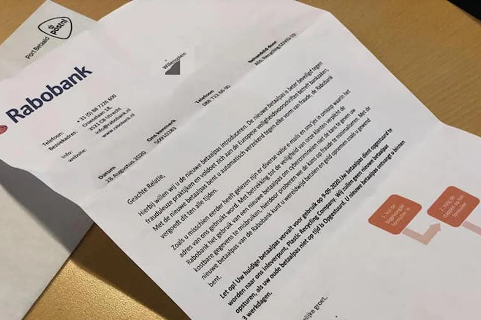 Er gaan valse brieven rond uit naam van de Rabobank, zo meldt de politie op sociale media. In de brief wordt gevraagd naar persoonlijke informatie, de pinpas én de pincode. Uiteraard is de brief niet echt van de Rabobank afkomstig, maar van oplichters die je rekening hopen leeg te trekken.