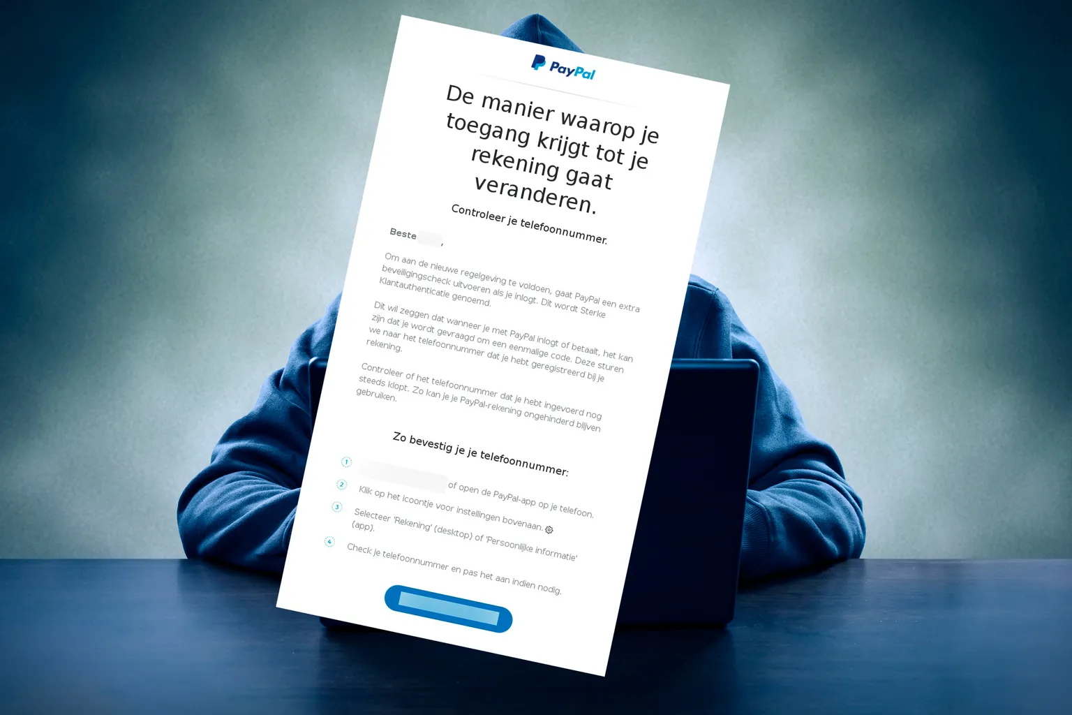'Om aan de nieuwe regelgeving te voldoen, gaat PayPal een extra beveiligingscheck uitvoeren als je inlogt. Dit wordt Sterke Klantauthenticatie genoemd', valt er te lezen in de mail. Deze extra beveiligingscheck gaat via je telefoonnummer.