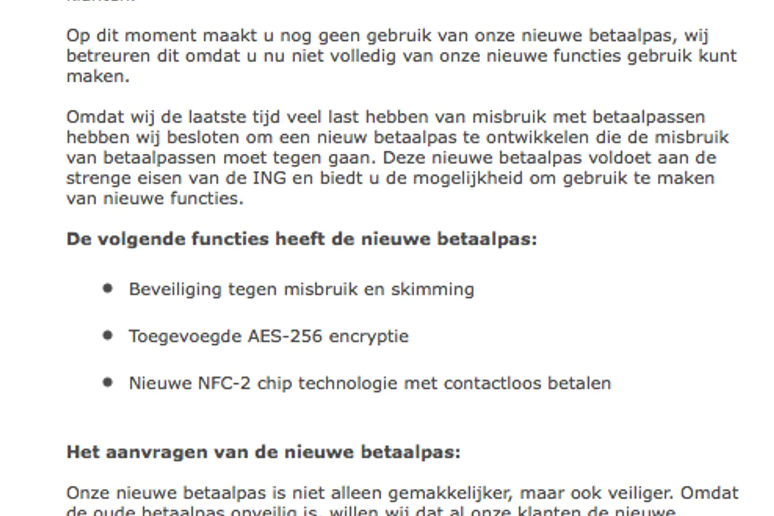 Trap niet in e-mail 'blokkeren betaalpas' uit naam van ING