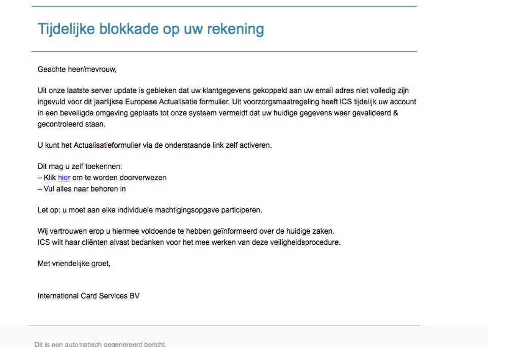 Trap niet in phishingmail 'ICS' over onvolledige klantgegevens