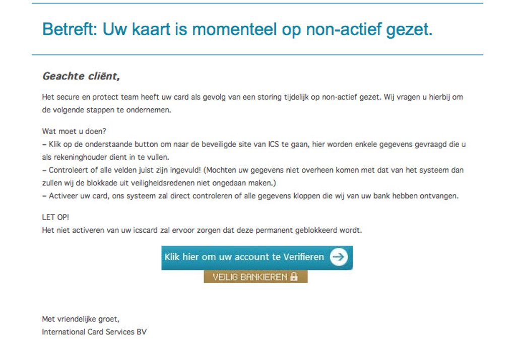 Trap niet in valse e-mail 'ICS' over geblokkeerde kaart