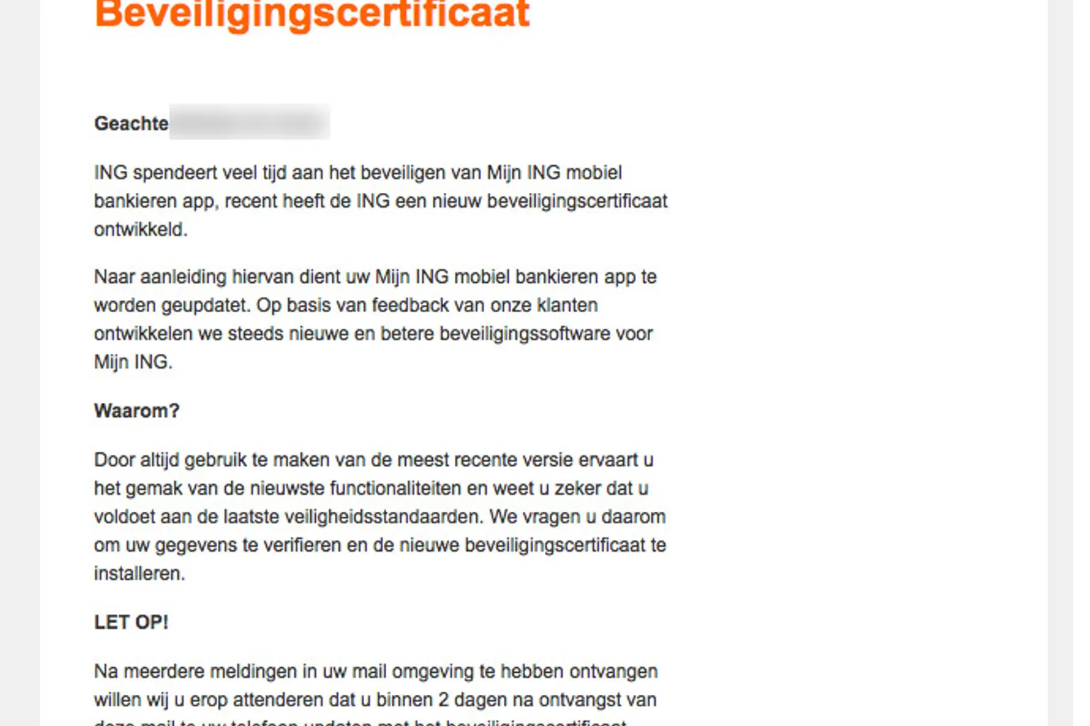 Trap niet in valse e-mail 'ING' over nieuw beveiligingscertificaat