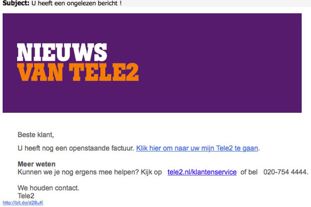 Trap niet in valse e-mail 'Tele2' over openstaande factuur