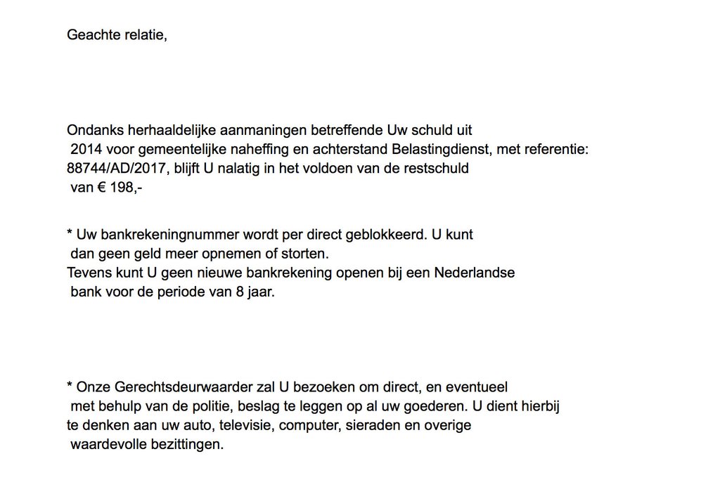 In de e-mail staat dat je, ondanks meerdere aanmaningen, nalatig bent met het aflossen van je schuld. Als je het bedrag nu niet betaalt, zal het CJIB zogenaamd het Openbaar Ministerie inschakelen en zullen er 'ernstige gevolgen' zijn. Zo zou je bankrekeningnummer geblokkeerd worden en zou je zelfs voor veertig dagen in hechtenis moeten.