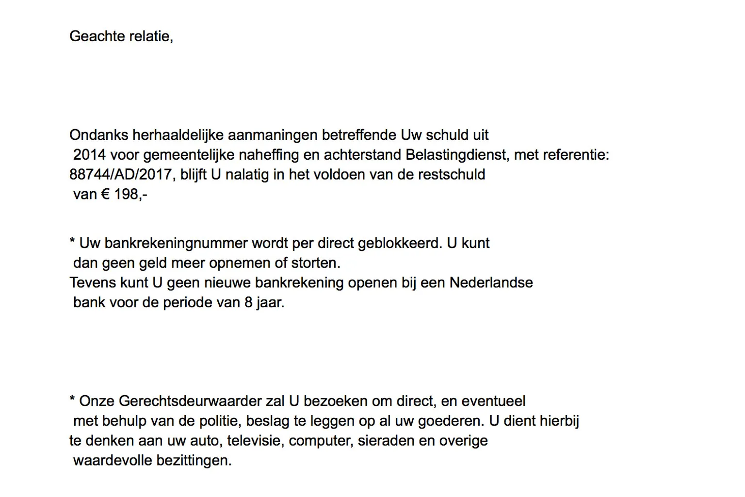 Let op! Criminelen versturen een e-mail uit naam van Centraal Justitieel Incassobureau (CJIB) waarin staat dat je direct je schuld moet betalen voor er 'zeer ernstige gevolgen' zullen volgen. Trap er niet in.