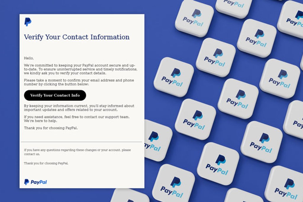 PayPal mailt jou zogenaamd dat ze jouw account zo veilig en actueel mogelijk willen houden. Je dient daarvoor je contactgegevens te verifiëren via een valse link.