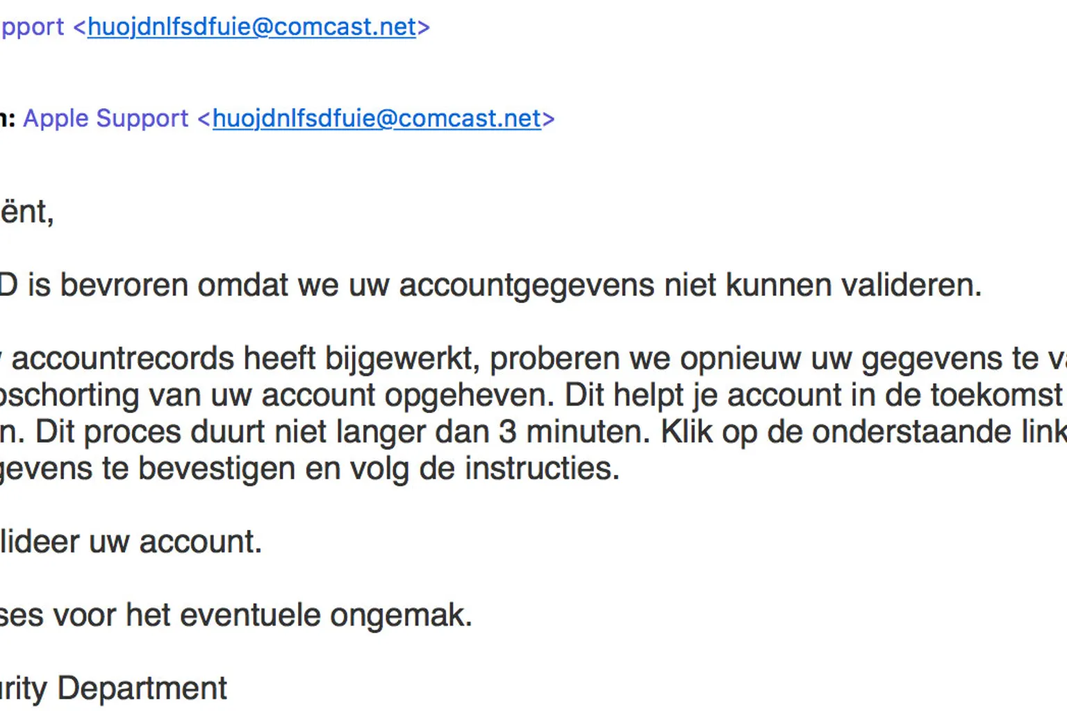 Vals e-mail 'Apple': 'Uw account wordt bevroren'
