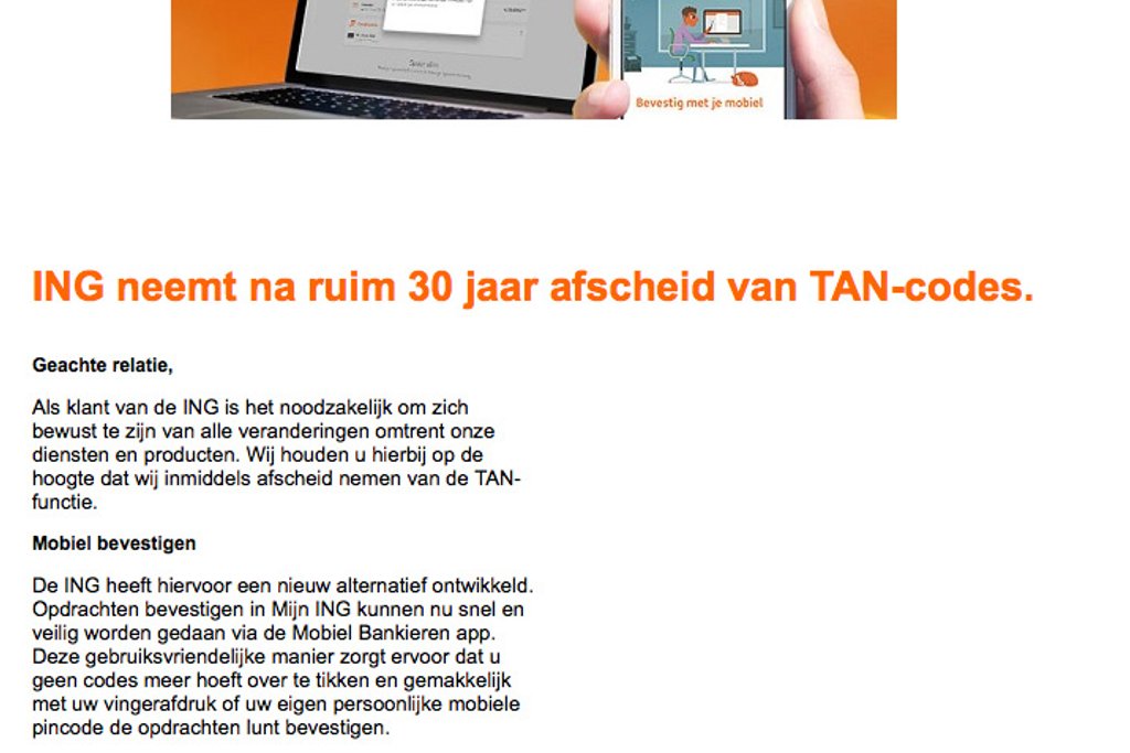 Valse e-mail 'ING': 'Bevestigen met mobiel vervangt TAN-code'