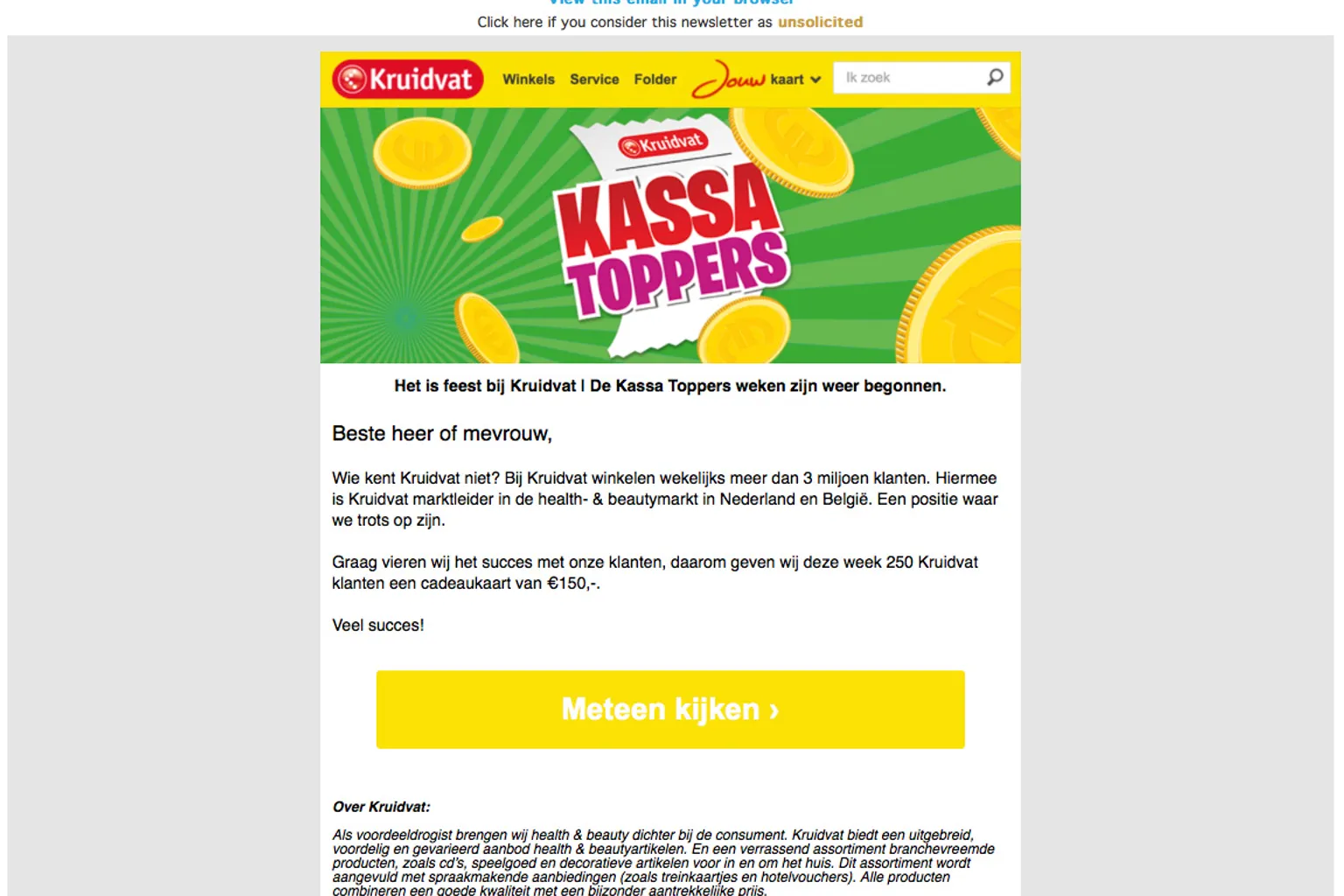 Valse e-mail 'Kruidvat' over cadeaukaart