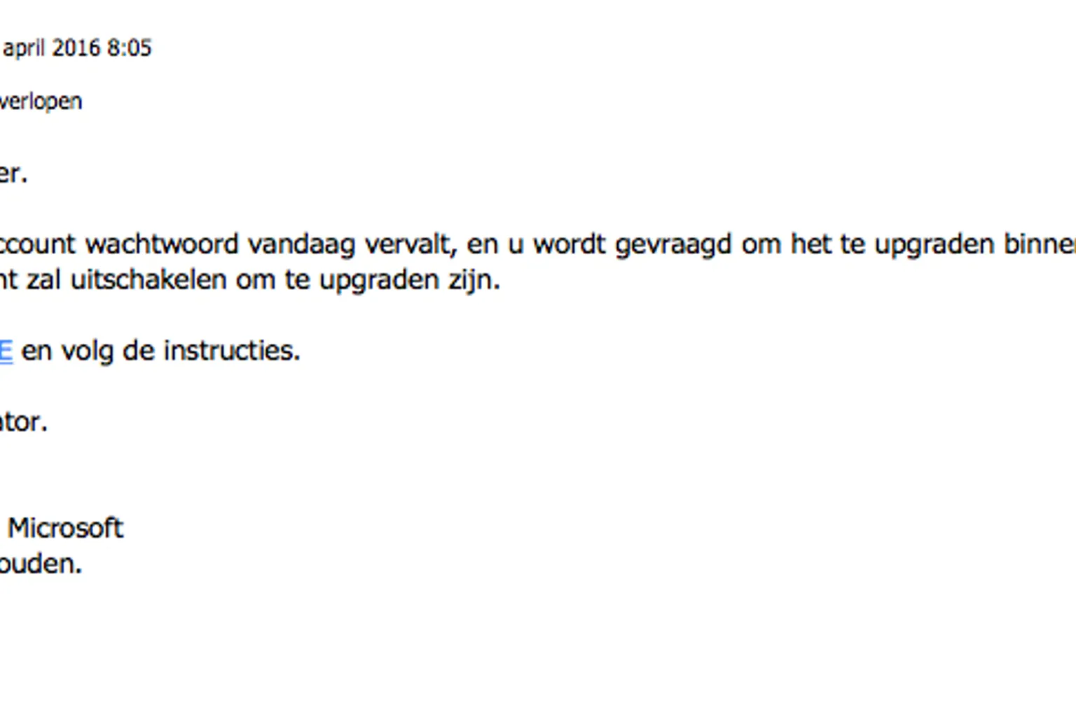 Valse e-mail 'Outlook': wachtwoord verlopen