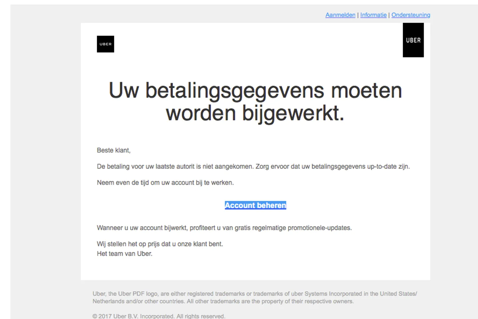 Valse e-mail 'Uber' over bijwerken betalingsgegevens