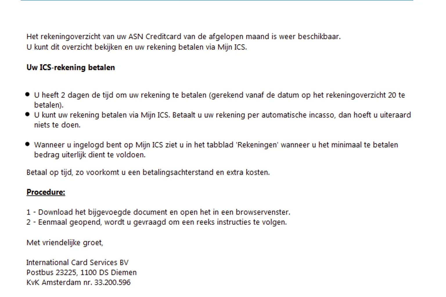 Valse e-mail uit naam van ICS over rekeningoverzicht