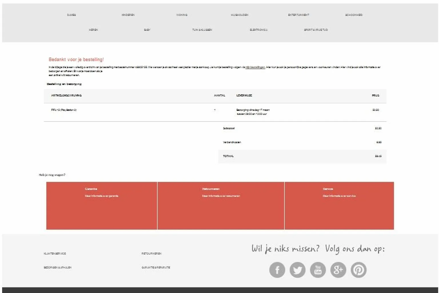 De valse mail heeft als onderwerp 'Hartelijk dank voor uw bestelling bij Wehkamp.nl'. Het gaat om het spel FIFA 15 voor de Playstation 3. Ook is er een bijlage te vinden. Open dit bestand niet! De bijlage bevat een zogeheten cryptolocker. Dat is een besmetting die het scherm blokkeert: zogenoemde ransomware (gijzelingssoftware). Pas na een betaling wordt dit opgeheven.