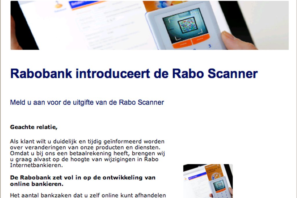 Pas op: er gaan diverse valse e-mails over de nieuwe Raboscanner rond.