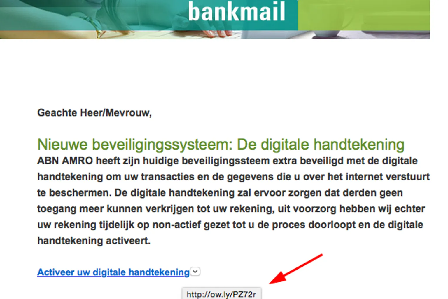 Valse mail ABN AMRO: 'digitale handtekening gereed'