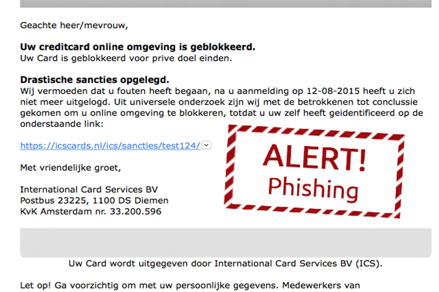 Valse mail ICS: 'Card geblokkeerd'
