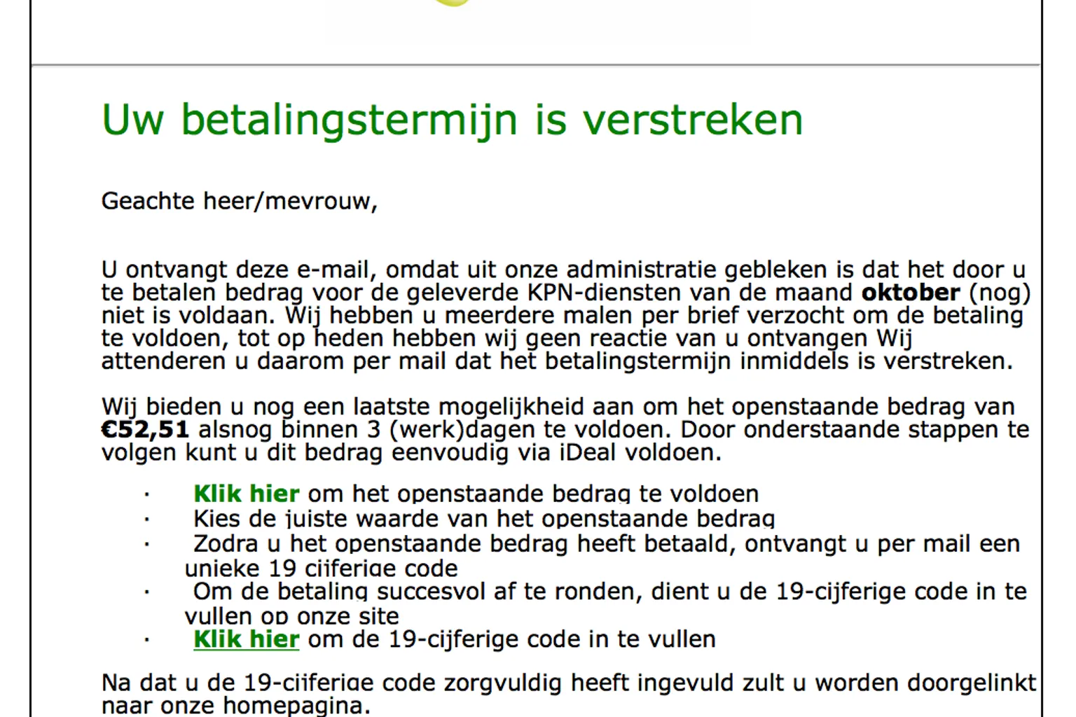 Valse mail 'KPN' over onbetaalde factuur