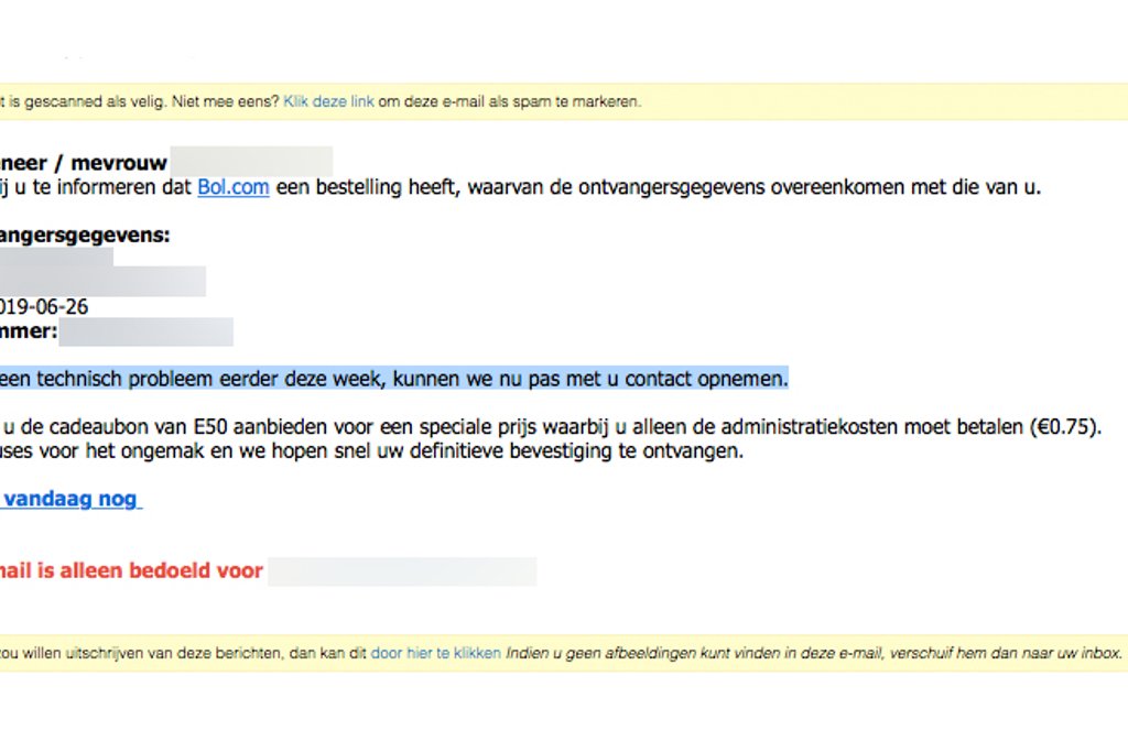 Er gaat een phishingmail rond die beweert dat er problemen zijn met jouw bestelling bij Bol.com.