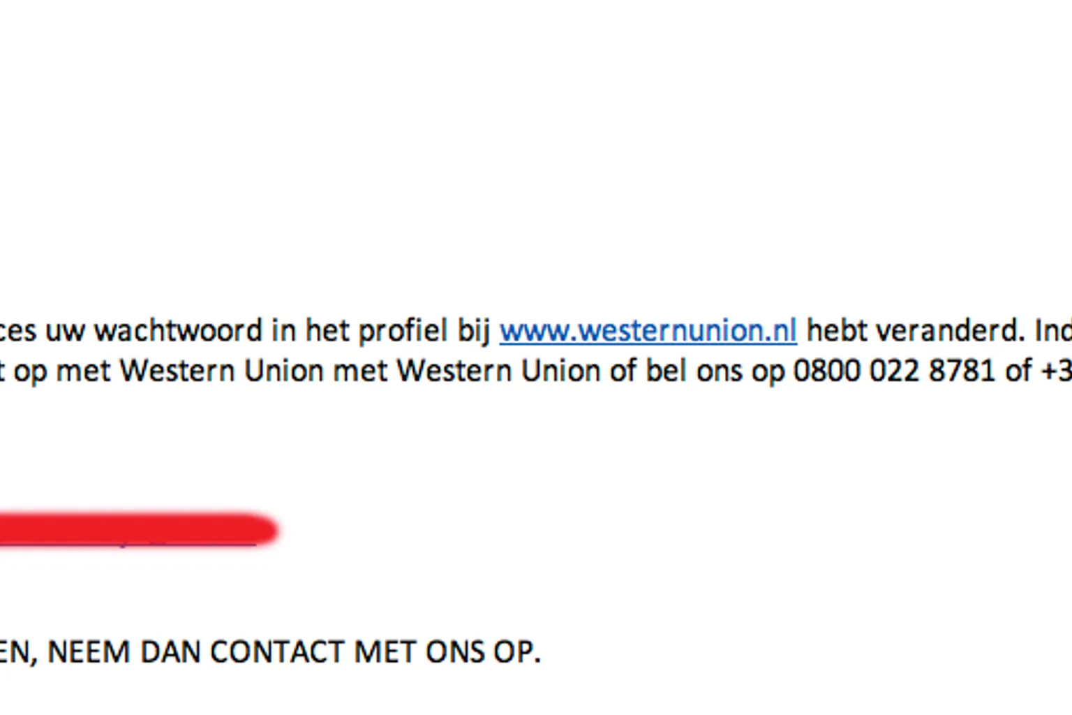 Een bericht ontvangen dat je wachtwoord van Western Union is gewijzigd? Ga hier niet op in!