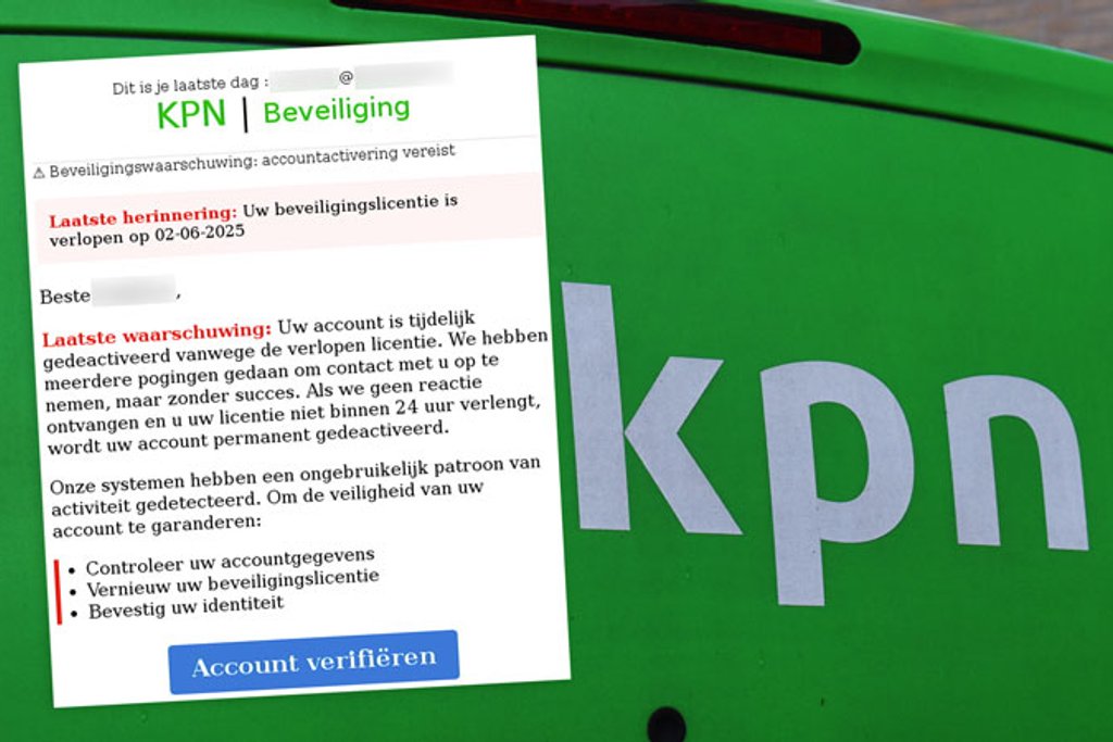 Waarschuwingsmail namens KPN ‘verleng jouw beveiligingslicentie binnen 24 uur’ is phishing