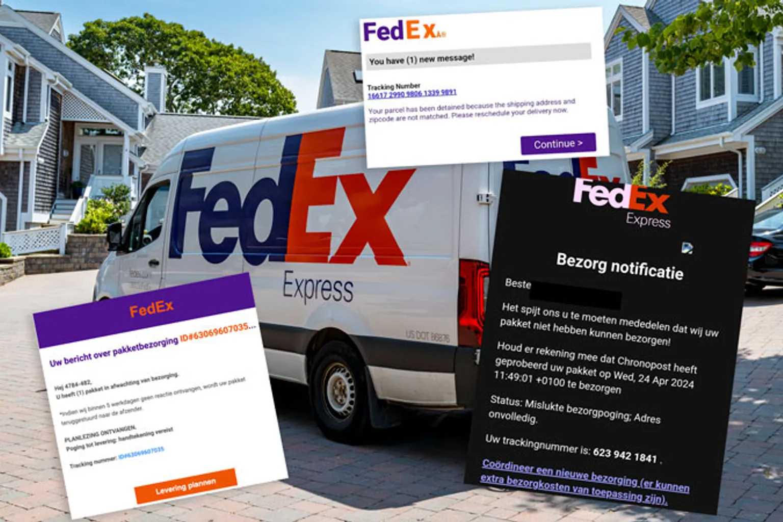 Oplichters zijn momenteel druk bezig met het versturen van verschillende FedEx-mails over niet bestaande pakketbezorgingen.