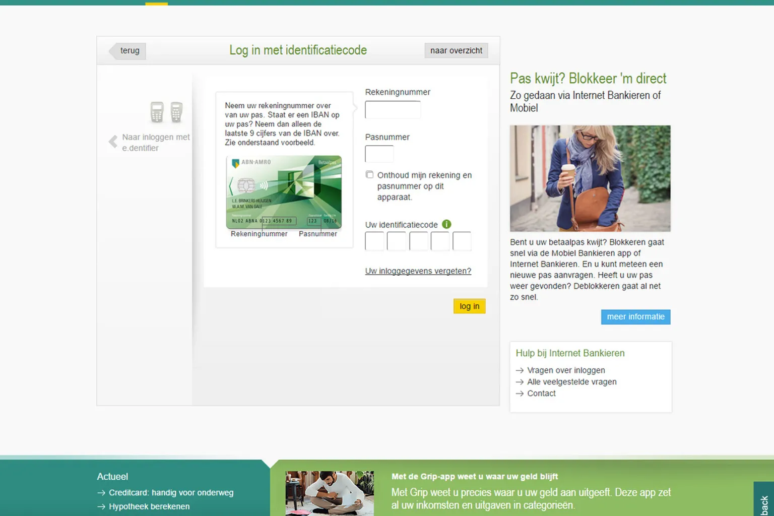 Als je op de link geklikt hebt, kom je op een website terecht die sprekend op die van ABN AMRO lijkt. Er staat een inlogscherm open waar je je rekeningnummer, pasnummer en identificatiecode in moet voeren. Doe dit niet! Met deze informatie krijgen criminelen toegang tot jouw rekening. Daarnaast kunnen ze met jouw gegevens frauduleuze activiteiten verrichten.