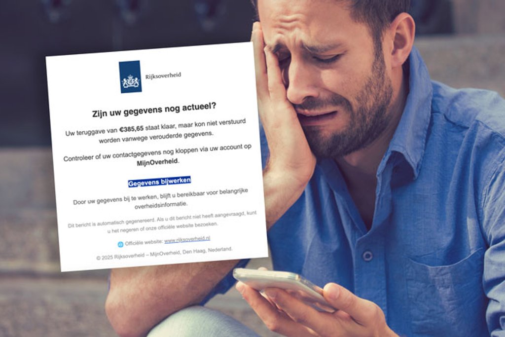Wees gewaarschuwd voor deze valse mail namens de Rijksoverheid: ‘Jouw teruggave van €385,65 staat klaar’