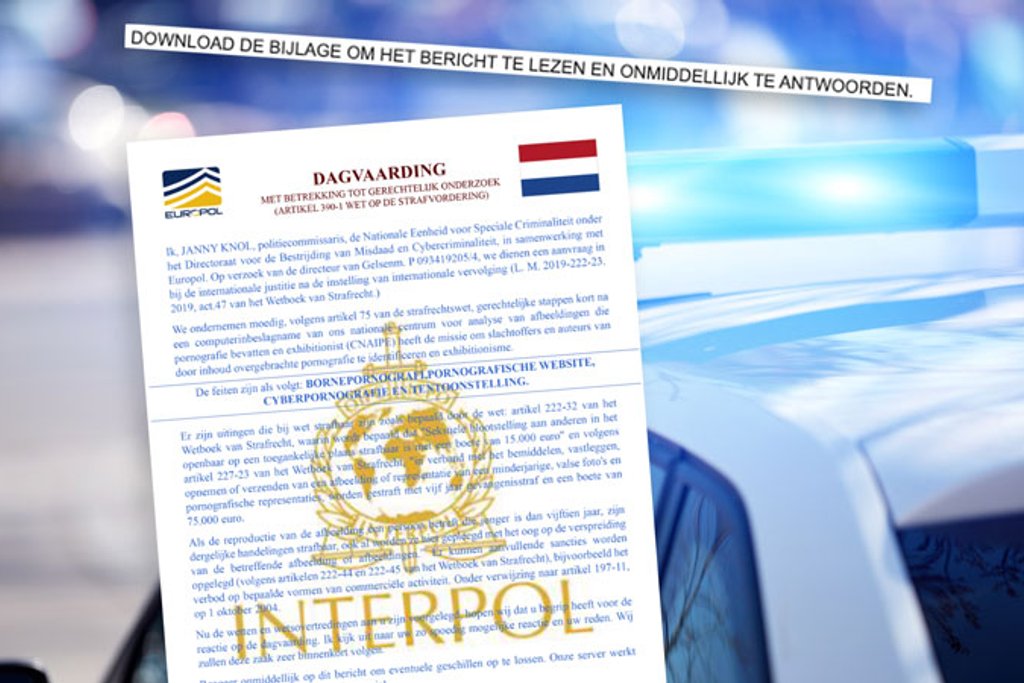 Momenteel versturen cybercriminelen een valse dagvaarding namens de internationale organisatie Interpol, specifiek namens korpschef Janny Knol.
