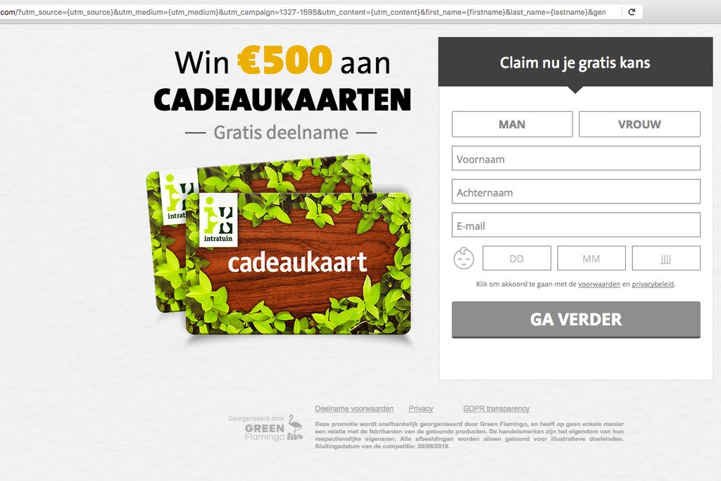 Er is een e-mail in omloop waarin staat je dat je voor €500,- aan cadeaukaarten kunt winnen. De plek waar je de kaarten uit kunt geven is de Intratuin. Dat klinkt misschien aantrekkelijk, zeker met het mooie weer van de afgelopen week. Het is echter een misleidende winactie.