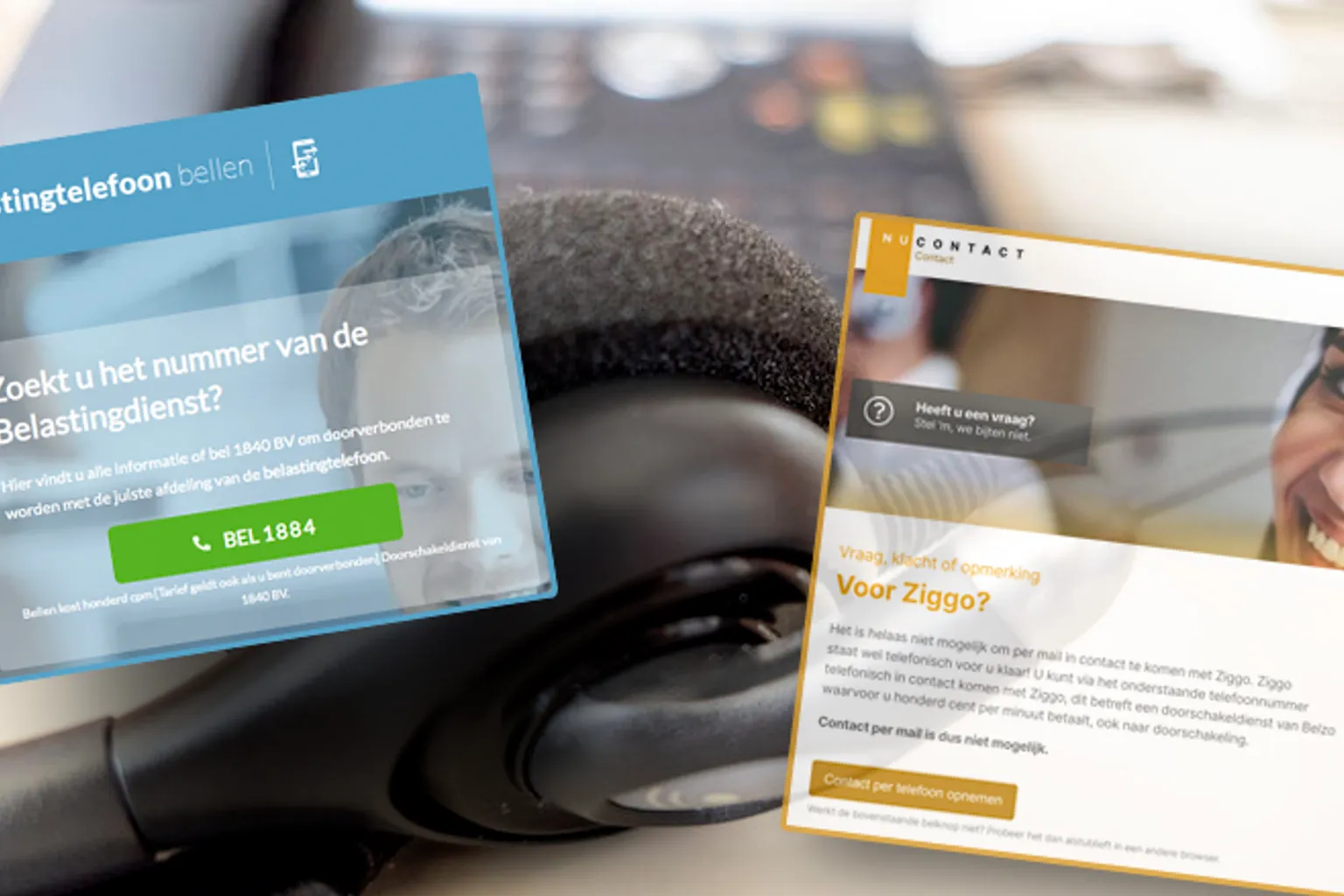 Het voorbeeld van KPN komt bij Nummerklantenservice.nl vandaan, het voorbeeld van de Belastingdienst hebben we van de website Belastingtelefoonbellen.nl geplukt en zowel Ziggo als het UWV troffen we op Nucontact.nl, wat je in dit geval overigens ook in één oogopslag kunt zien aan de vrijwel identieke layout en het feit dat dezelfde stockfoto wordt gebruikt.