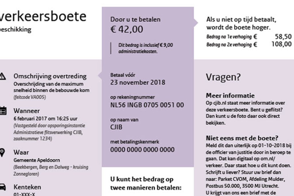 Het incassobureau stuurt je wel boetes per post. Ligt er een brief van het CJIB op je deurmat waarvan je twijfelt of het een echte boete is? Check dan of deze overeen komt met de afbeelding hieronder. Dat is hoe een echte boete eruit moet zien. Wijkt de brief die je ontvangen hebt hiervan af? Dan heb je waarschijnlijk een valse boete in huis.