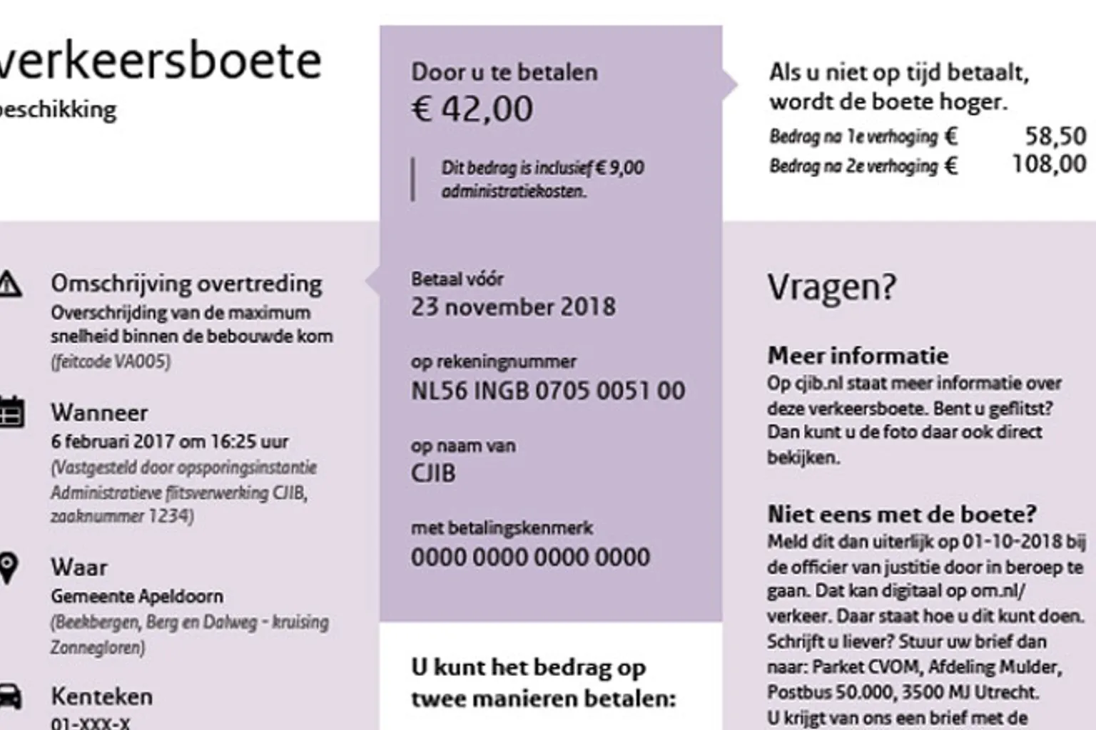 Ook aan het rekeningnummer kun je zien of je met een echte bekeuring te maken hebt. De rekeningnummers die het CJIB gebruikt, staan vermeld op de website van deze organisatie. Wijkt het rekeningnummer af, maak dan geen geld over.