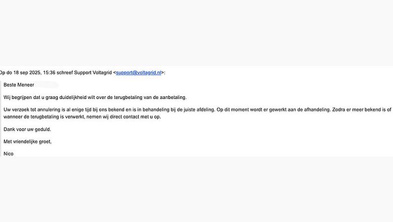 Ramesh beweert vervolgens dat Mila ook heeft getekend voor een financiering van de thuisbatterij. Het gaat om een totaalbedrag van 19.056,29 euro. Ze ontvangt tijdens het gesprek een mail van de ‘Voltagrid-klantenservice’ met een bevestiging van de bestelling mét haar handtekening eronder. Dezelfde handtekening die ze eerder dacht te zetten voor een afspraak.