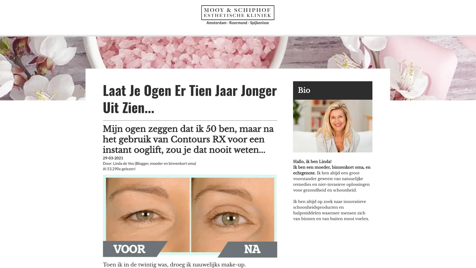 'Laat je ogen er tien jaar jonger uitzien', is waarmee wordt geadverteerd voor producten op kliniekmooy.com. Helaas blijken het vooral mooie woorden, want de politie stelt dat het hier gaat om een malafide webshop.