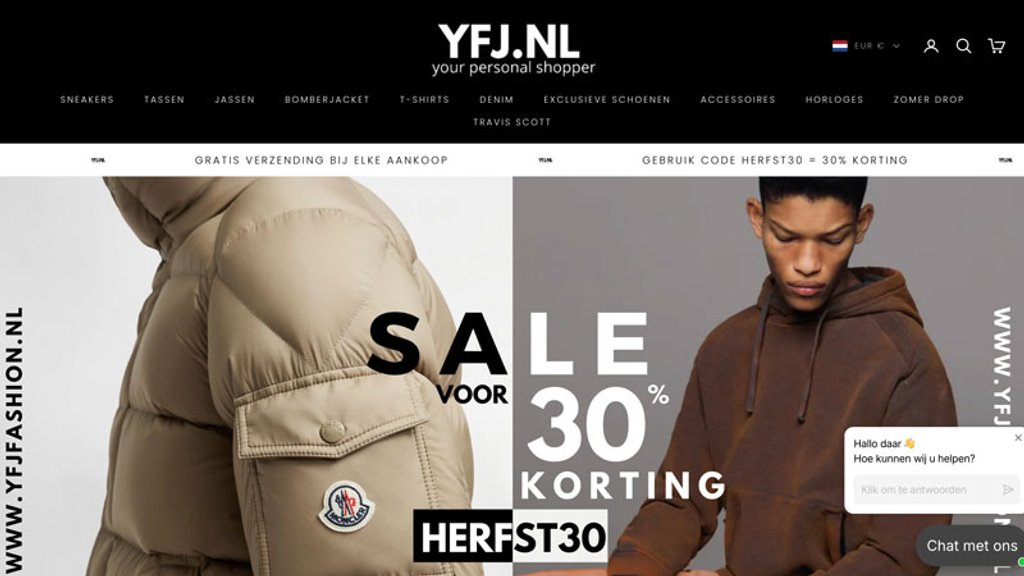 Van een Canada Goose gewatteerde winterjas en Stone Island shirt tot Amiri sneakers en een Gucci tas: de keuze is reuze op 'yfjfashion.nl'. Ook zou er een herfstkorting van 30 procent actief zijn en zijn alle shirts 1+1 gratis. Onderaan de website staan valse Trustpilot-reviews, waarbij de malafide webshop zogenaamd 4.5 sterren scoort op basis van ruim 80 reviews. Laat je alleen niet voor de gek houden door deze kortingsacties en positieve reviews, want dit is allemaal nep.