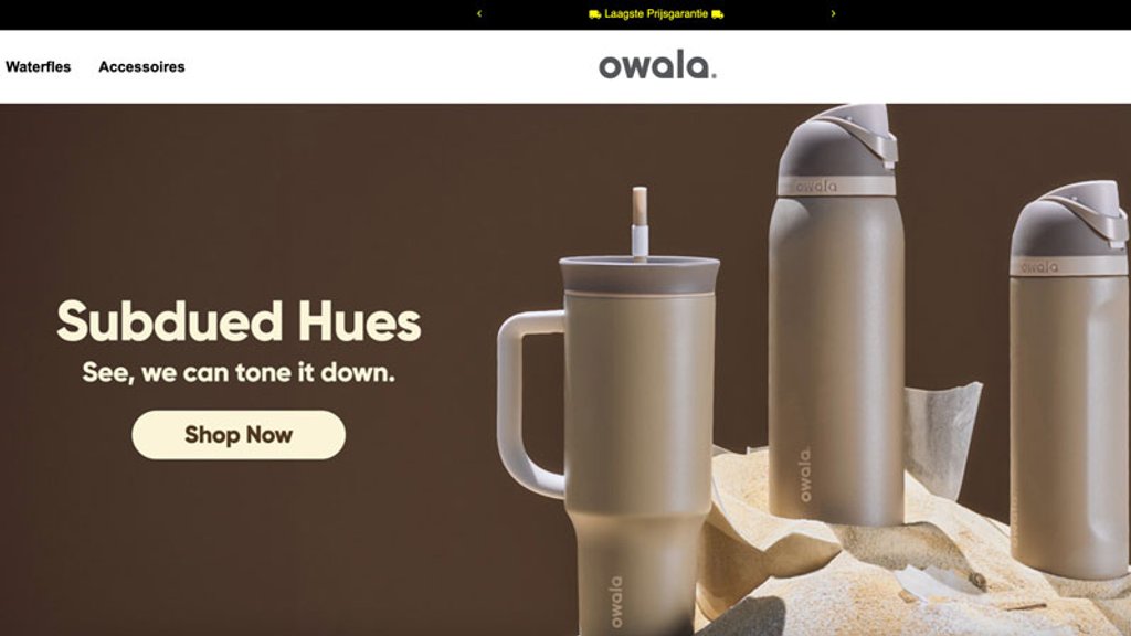 Bij 'owalanetherlands.com' worden deze siliconen flessen in alle kleuren verkocht tegen hoge kortingen. Ook vind je bij deze webshop allerlei accessoires, zoals rietjes, schoonmaaktabletten en borstels, voor de Owala drinkflessen tegen hoge kortingen. Het klinkt allemaal erg mooi, maar de politie ontving meerdere meldingen tegen deze webshop. Uit deze meldingen van gedupeerde klanten blijkt dat de webshop betaalde bestellingen niet levert.