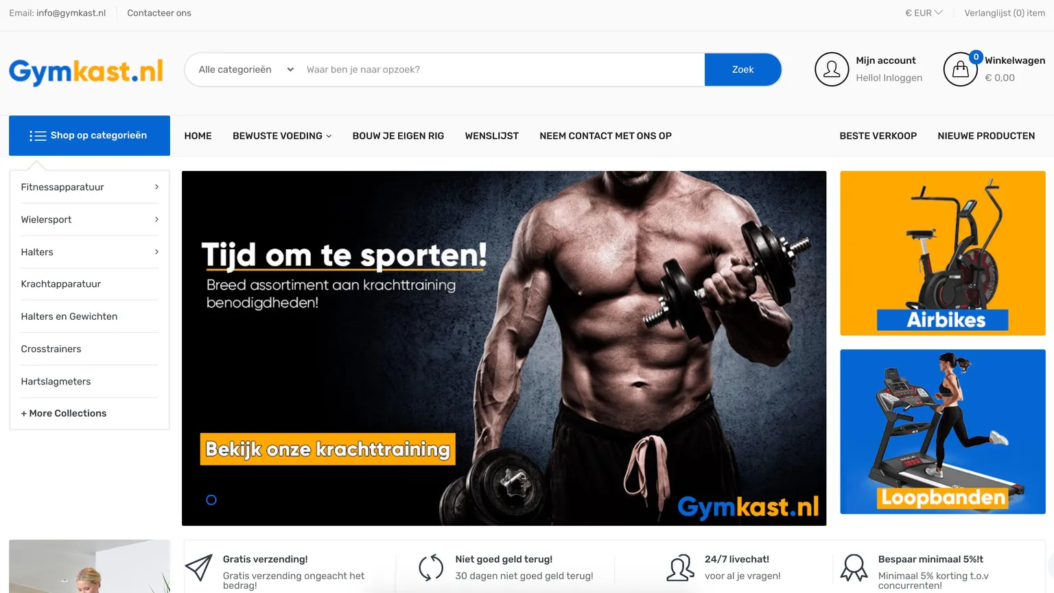 Ben je op zoek naar sport- en fitnessartikelen? Bestel deze dan niet bij Gymkast.nl. De politie waarschuwt dat deze webshop zeer waarschijnlijk malafide is.