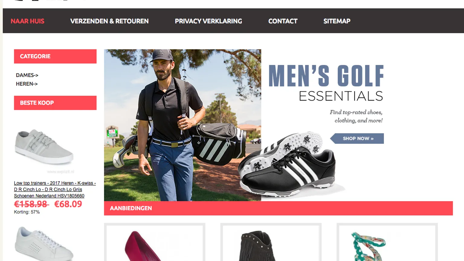 Deze webwinkels bieden schoenen en kleding aan voor erg lage prijzen. Bij geen van de websites zijn de gegevens van de betreffende bedrijven terug te vinden. Contact is enkel mogelijk via een contactformulier. Meerdere pagina's zijn vertaald via Google Translate.