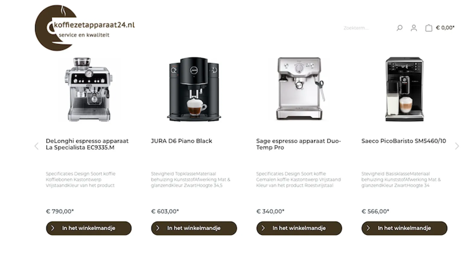 Een goede koffiemachine, daar kun je gerust honderden of zelfs duizenden euro's aan uitgeven. Extra zuur als jouw bestelling vervolgens nooit wordt geleverd. Volgens het Landelijk Meldpunt Internetoplichting (LMIO) van de politie is Koffiezetapparaat24.nl een webshop die je beter kunt mijden: hoewel ze prachtige apparaten te koop aanbieden, komt het bedrijf na betaling niet over de brug. Het is een onbetrouwbare webshop van oplichters.