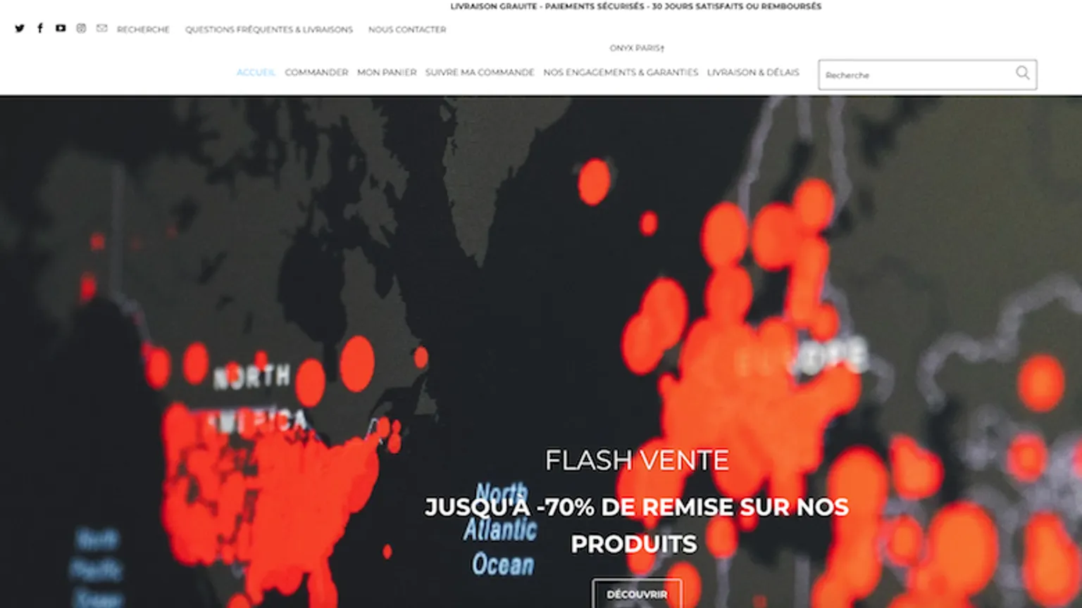 Op de website Onyx-paris.com worden mondkapjes, desinfecterende handgel en beschermende latex handschoenen te koop aangeboden. Maar volgens de politie is de kans gering dat je je bestelling ontvangt.