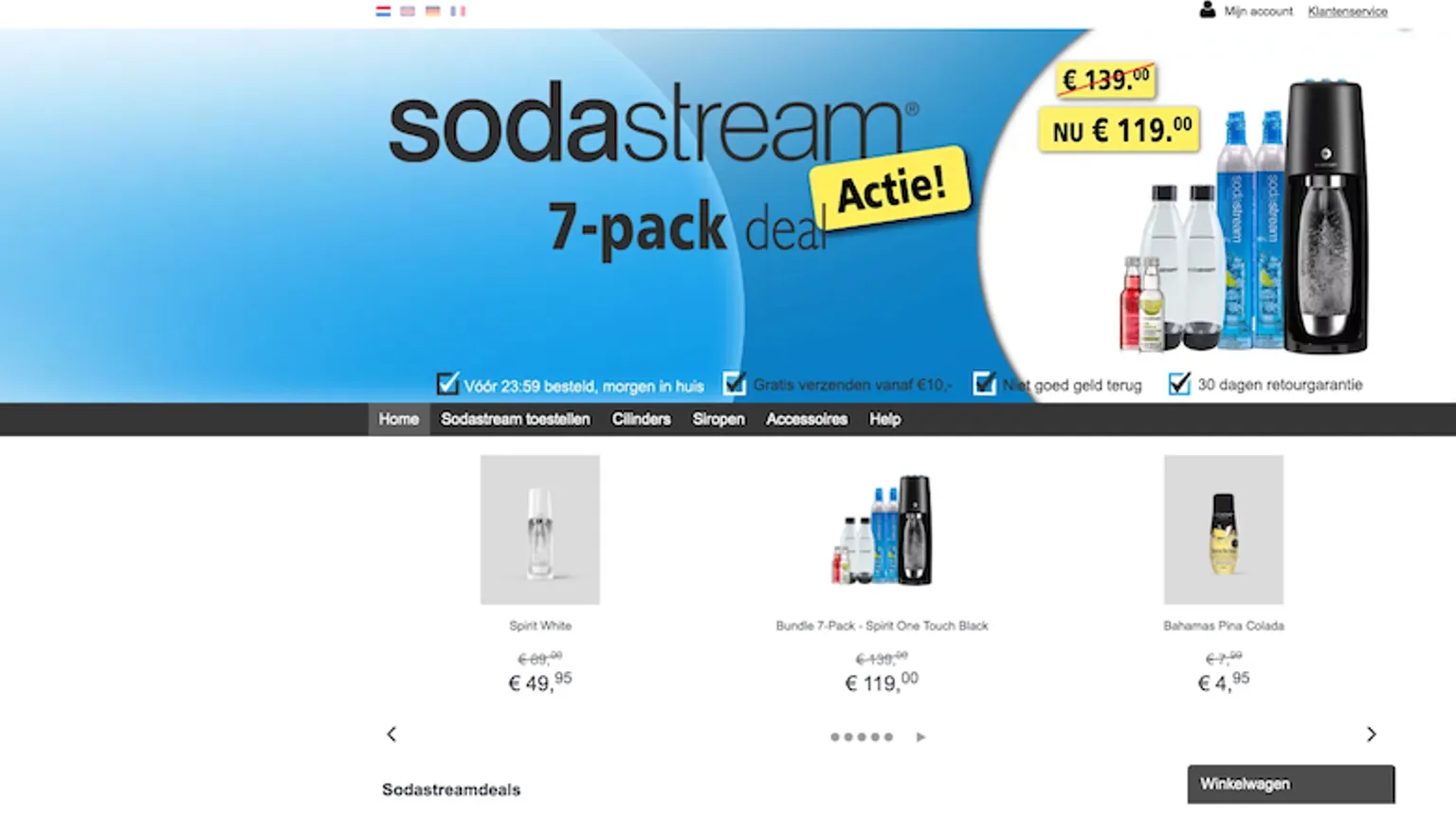 • Op de website sodastreamdeals.nl stelt men gebruik te maken van de algemene voorwaarden van Stichting Webshop Keurmerk. Echter, de webwinkel blijkt geen lid te zijn van Stichting Webshop Keurmerk.