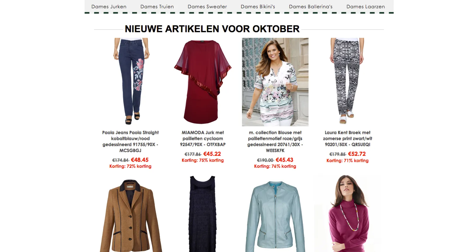 Op deze site wordt kleding tegen volgens de politie extreme en onlogische prijzen aangeboden. Er zijn geen bedrijfsgegevens te achterhalen en het is enkel mogelijk om via een contactformulier contact op te nemen met de verkoper achter de website.