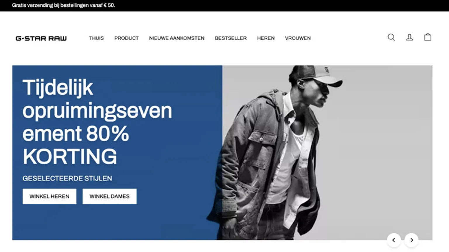 Bij webshop 'g-starvip.com' ontvang je tot 80 procent korting op G-Star kleding vanwege een opruimingsuitverkoop. Koop hier niet, waarschuwt de politie.