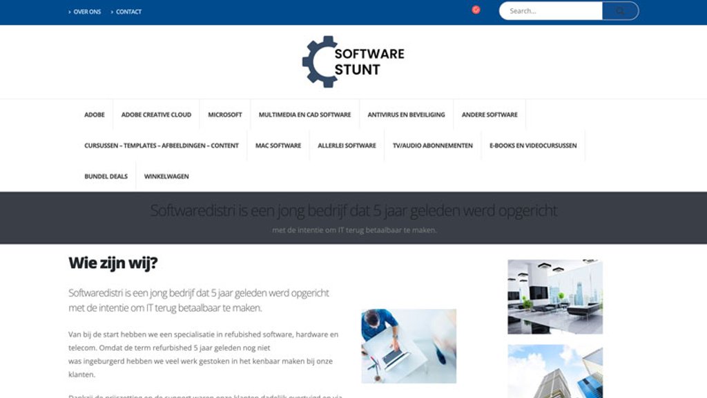 In de website-url en het bedrijfslogo staat 'Software Stunt' als bedrijfsnaam, maar in de tekst op de website wordt de naam 'Softwaredistri' gebruikt. Het is vreemd dat de namen niet overeenkomen. Daarnaast stunt de webshop met hoge kortingen op softwareprogramma's.