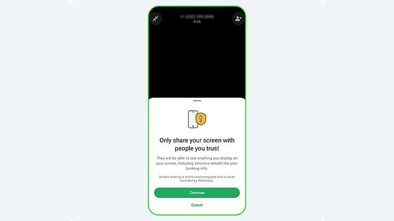 Om online oplichting aan te pakken lanceert WhatsApp een nieuwe waarschuwing wanneer je tijdens een videogesprek met onbekenden je scherm probeert te delen. Daarnaast test het platform met een maandelijkse limiet op het versturen van berichten naar onbekende contacten.